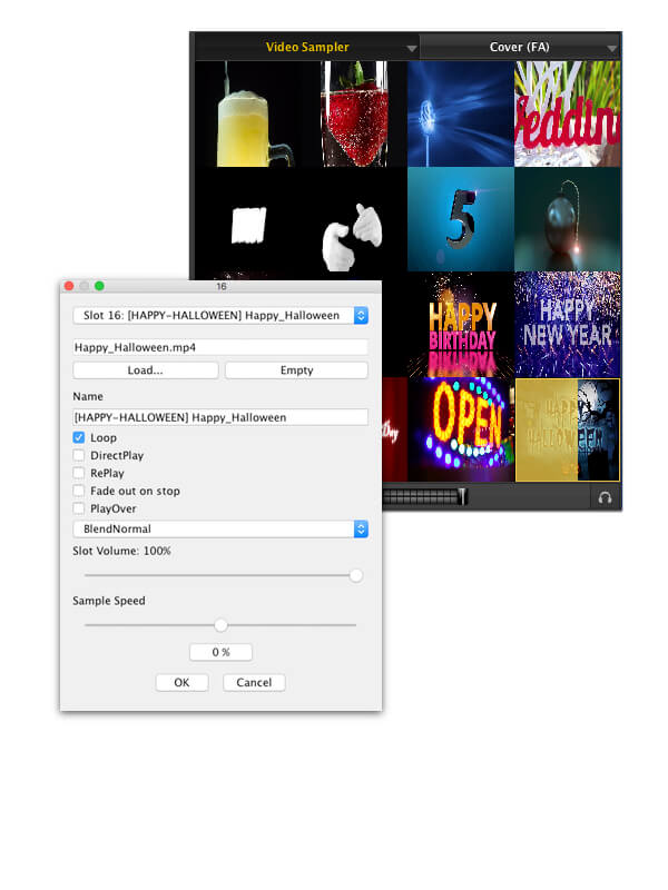 Zusätzlich hast du mit UltraMixer 6 die Möglichkeit Schaurige Video-Clips in deinen Video-Sampler zu laden. Hierfür stehen dir insgesamt 16 frei belegbare Slots zur Verfügung.