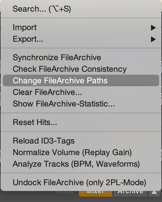UltraMixer offers some assistance for this third solution. The small arrow button next to “Archive” in the lower bar of the program takes you to a menu for synchronizing, checking, or emptying your FileArchives.