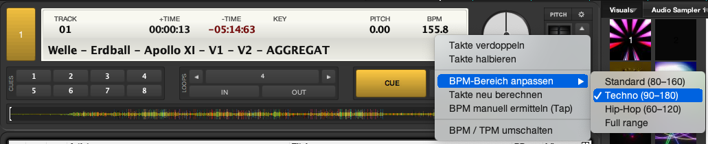 Die BPMs eines Titels werden automatisch ermittelt wenn der Titel in einen Player geladen wird. Dies geschieht während die Waveform für den Titel erstellt wird.