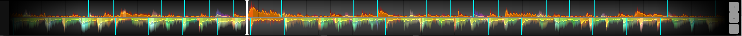 Am rechten Rand des Waveformbandes befinden sich drei Schaltflächen zum Zoomen der Waveform in Abspielrichtung.