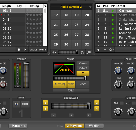 Sobald du den „AutoDJ“ Button gedrückt hast, spielt UltraMixer alle Titel aus den Playlisten nacheinander ab.