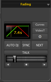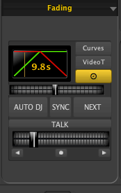 Am Crossfader Panel findest du den „Auto DJ“ direkt neben der „Sync“ Funktion. Du kannst auch das „Fading“ Widget in jeder einzelnen UltraMixer Ansicht auswählen, um den Auto DJ zu starten.