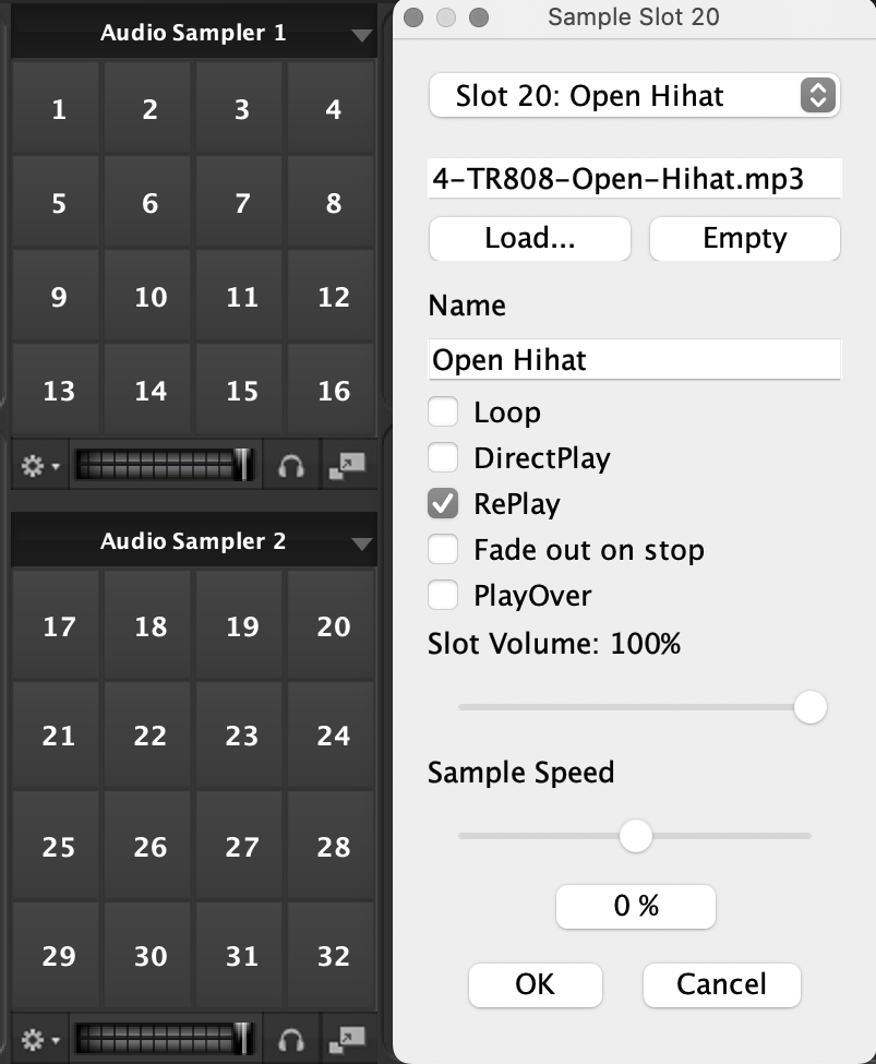 Use MP3 sound files and load them into the sample bank by selecting “Load”. Vice versa, you can also empty the slot by clicking „Empty“.Loop #