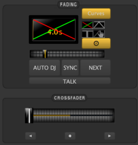 Mit dem Crossfading-Tool schaffst du den perfekten Übergang zwischen den Songs und Visual-Effekten. Wähle dazu einfach die Fading-Art und -Dauer aus und schiebe dann manuell oder automatisch den Regler von links nach rechts.